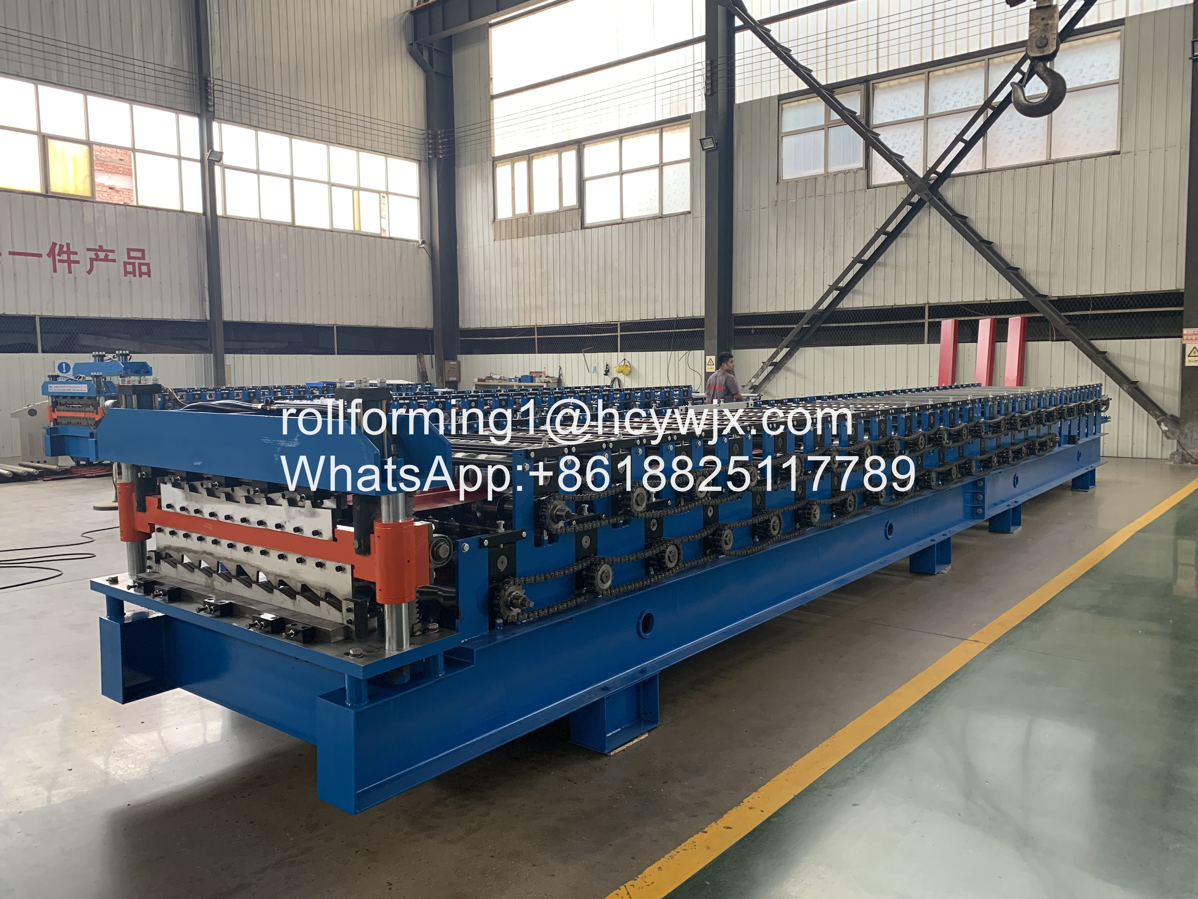 E o COMPRIMENTO, você pode ajustar o comprimento no armário de controle (algum tamanho), a máquina produzirá este comprimento para você (POR EXEMPLO: se você precisa 6m, o produto acabado é 6m).