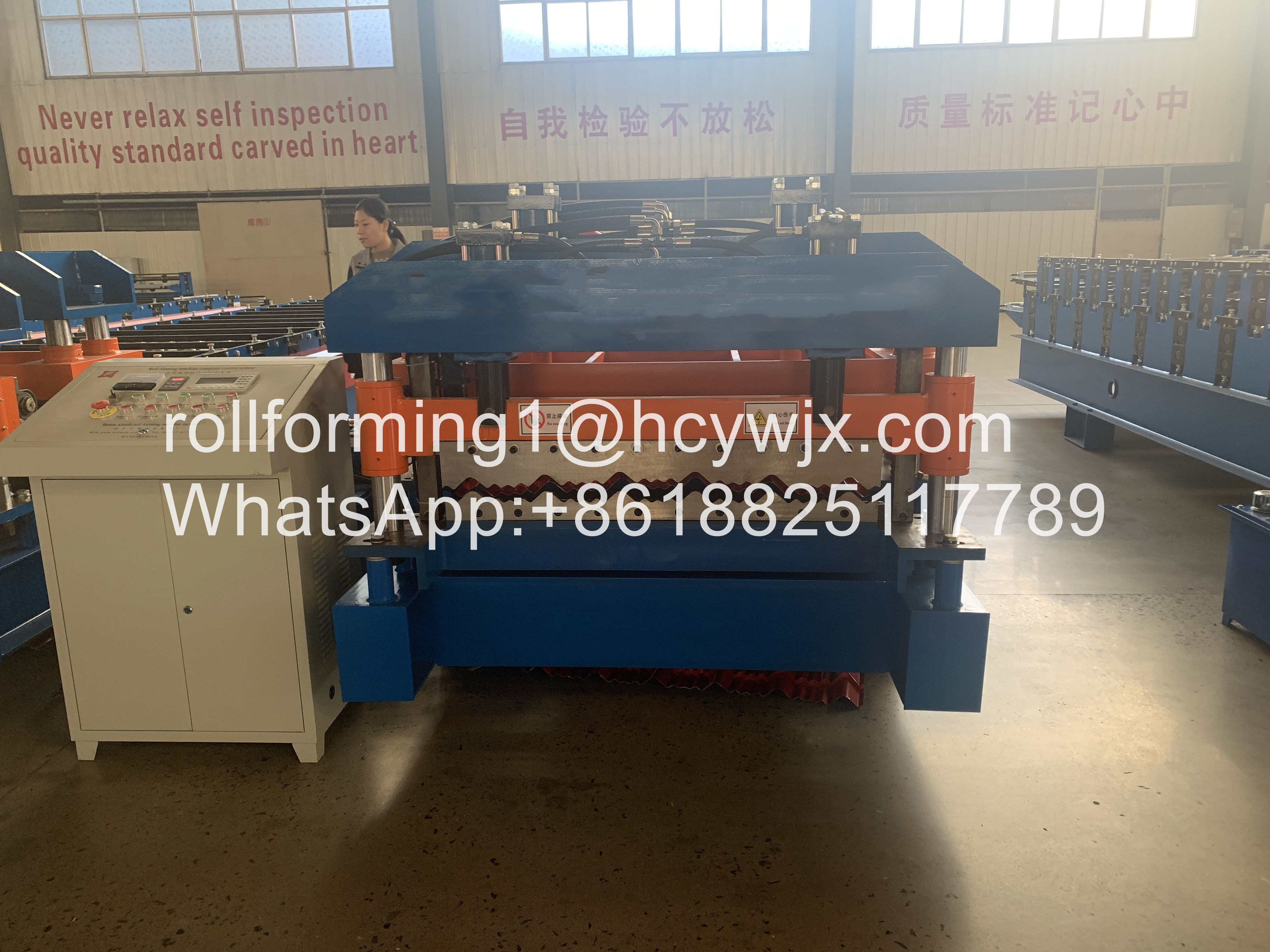 Este padrão europeu de alta velocidade monterrey vitrificou o rolo da telha que forma a máquina é o equipamento especial para o rolamento contínuo e a frio-formação na chapa de aço. Adota a chapa de aço de bobinamento como a matéria prima, decoiling a bobina, o rolamento contínuo e a frio-formação, cortada automaticamente ao tamanho e à saída o painel terminado. O equipamento adota o controle do PLC, a frequência da C.A. e o ajuste da tecnologia da velocidade, e realiza automaticamente a produção contínua, consequentemente, é realmente um novo tipo de equipamento de produção de poupança de energia e alto-eficaz para a construção de aço.
